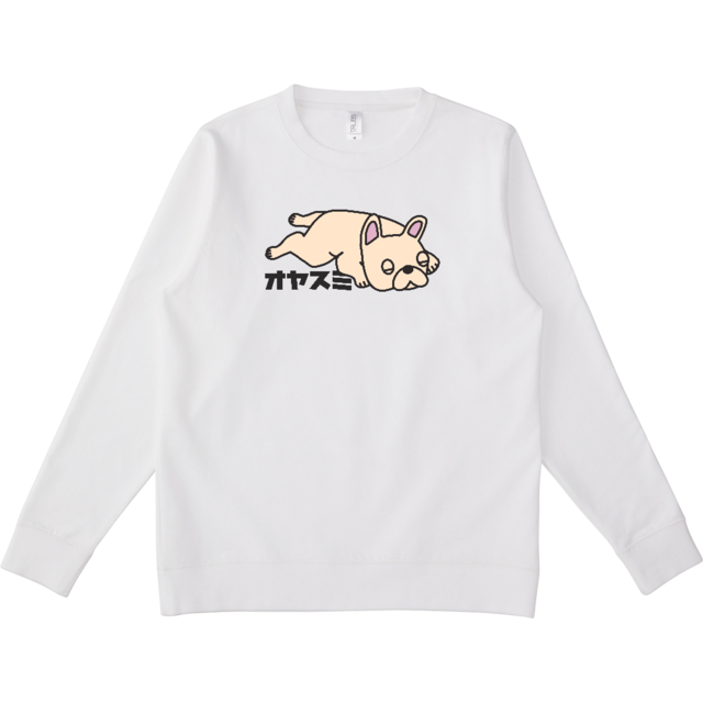 朝起きたとき、散歩に行く前にいつもする、フレブル・ノビスタイル。 起き上がると、まず始めに前足をストレッチ。 そして、この2段階目のノビーで、後ろ足を伸ばします。 「さ、準備運動バッチリですよっと!」と、 このポーズは準備運動完了のサインです。 そんな愛らしい様子をイラストにした「ノビver2_クリーム」のスウェット。 着るだけで楽しい気分になれるはずです! 7.4オンス生地で、裏パイル生地になっています。 ラフなシルエットと着心地でありながら、 レイヤードもしやすいので幅広く使えるスウェット。 カジュアルなコーディネートはもちろん、アクセントとしても大活躍。 どんなシーンでもあなたの存在感を引き立てる一枚です。 サイズは、SからXXLまで計5サイズの豊富に展開しています。 家族でお揃いから職場のユニフォーム、サークル活動まで、 あらゆるシーンで活躍する頼れる一枚です。 ●サイズ ※サイズは、商品の実寸を平置きで寸法しております (数値の単位はcm)。 繊維製品ですので、1~2cmの誤差が出る場合があります。 ・S:着丈64cm、身幅48cm ・M:着丈67cm、身幅51cm ・L:着丈70cm、身幅54cm ・XL:着丈73cm、身幅57cm ・XXL:着丈76cm、身幅60cm ●素材 ・250g/㎡ ・綿100% ※着用イメージはAIモデルを採用しています。 実際お届けする商品は、1枚目の画像のものとなります。