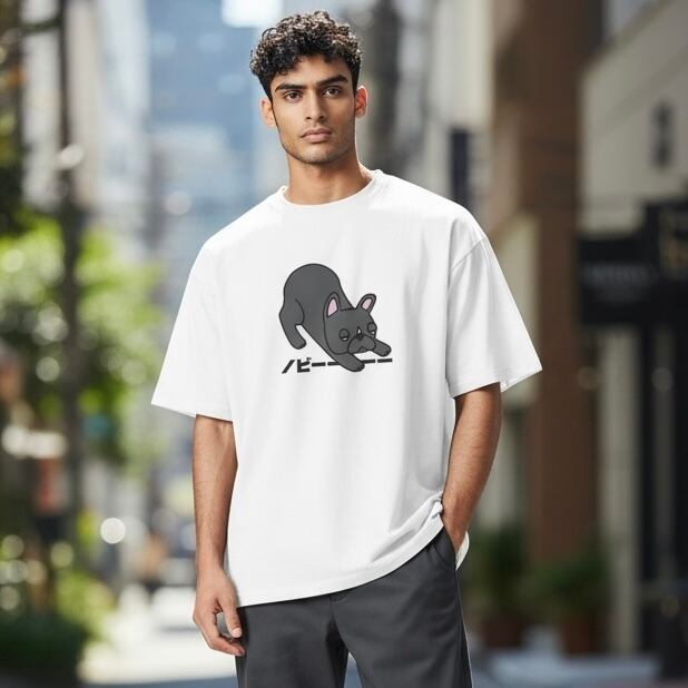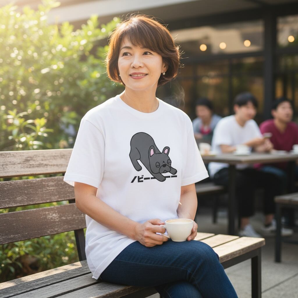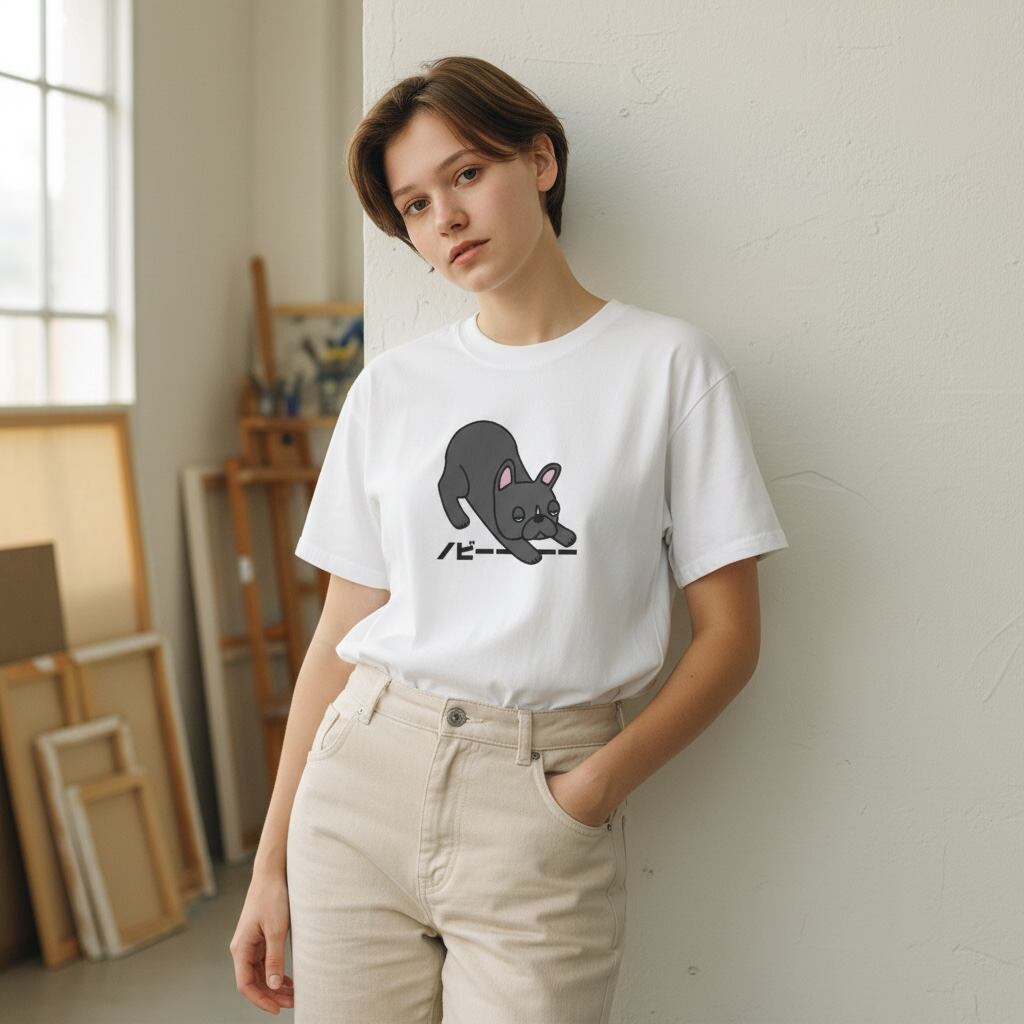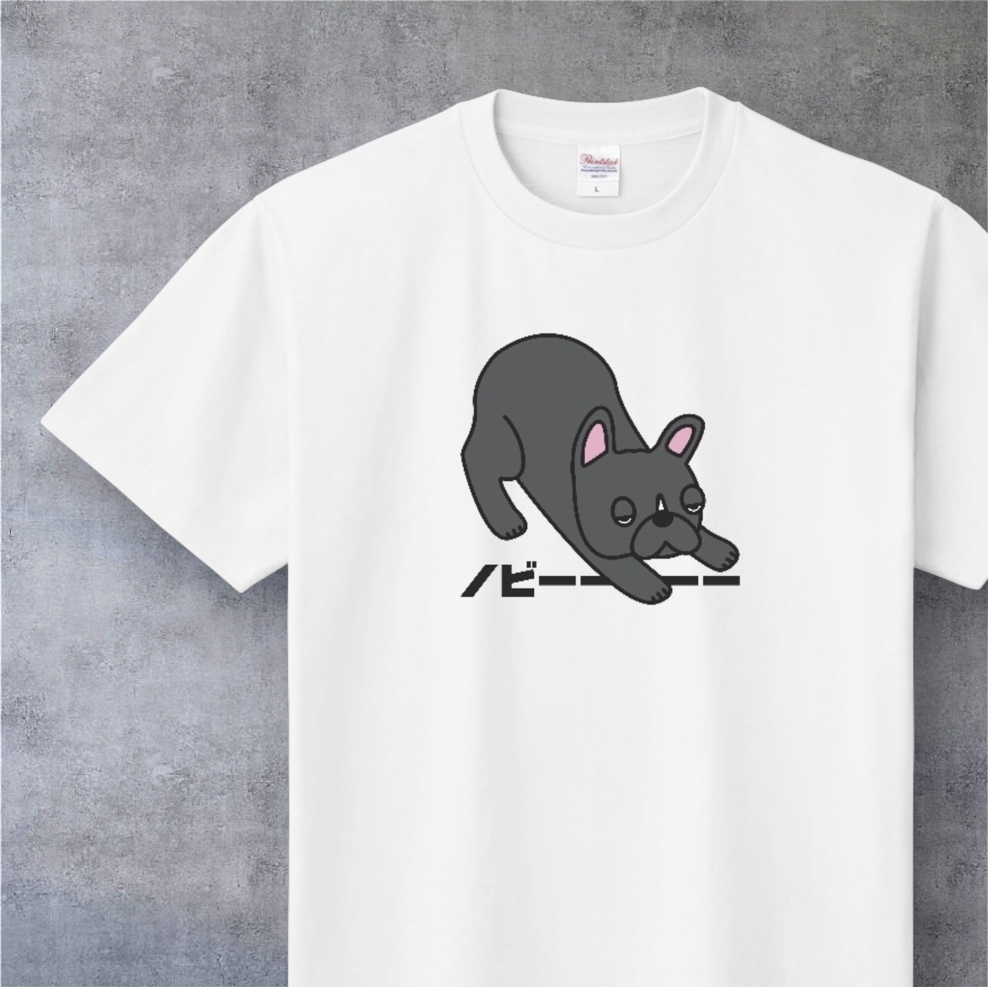 その愛らしい様子をイラストにした「ノビー_ブリンドル」の半袖Tシャツ。
