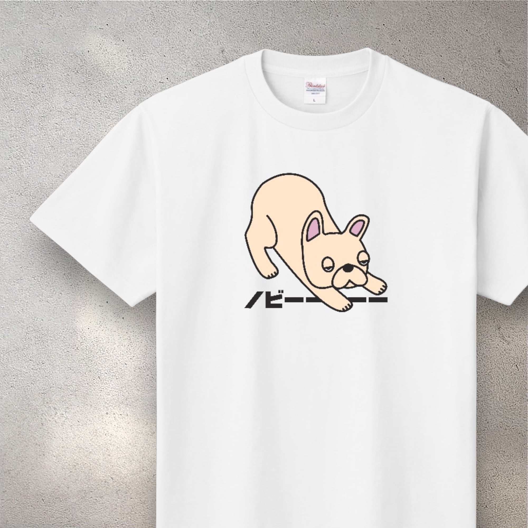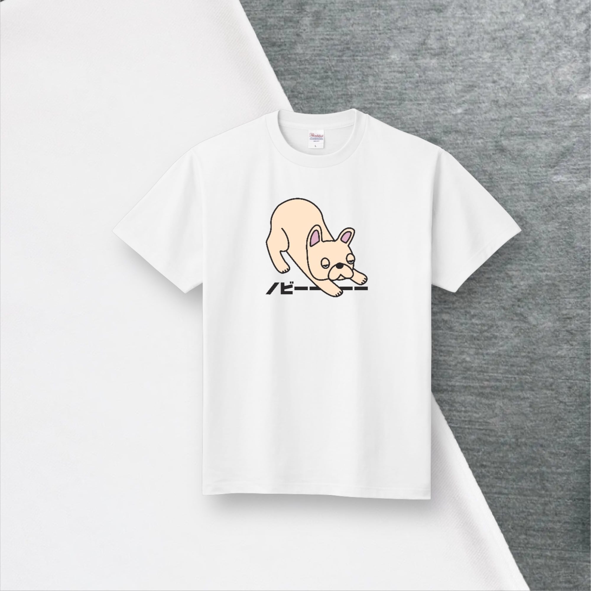 その愛らしい様子をイラストにした「ノビー_クリーム」の半袖Tシャツ。