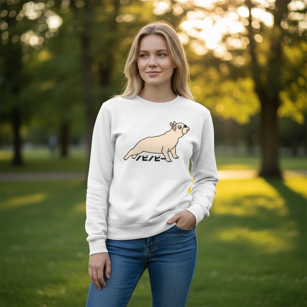 そんな愛らしい様子をイラストにした「ノビver2_クリーム」のスウェット。