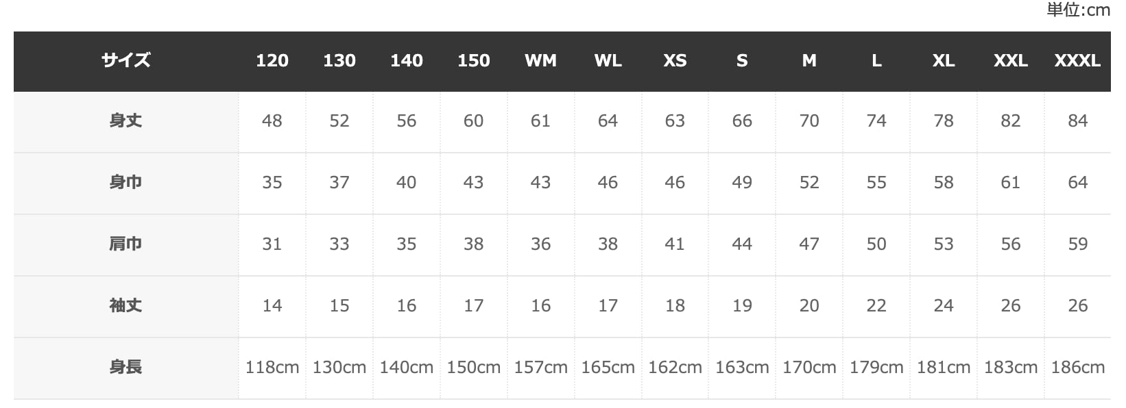 サイズは、120cmのキッズサイズからXXXLまで計13サイズの豊富に展開しています。