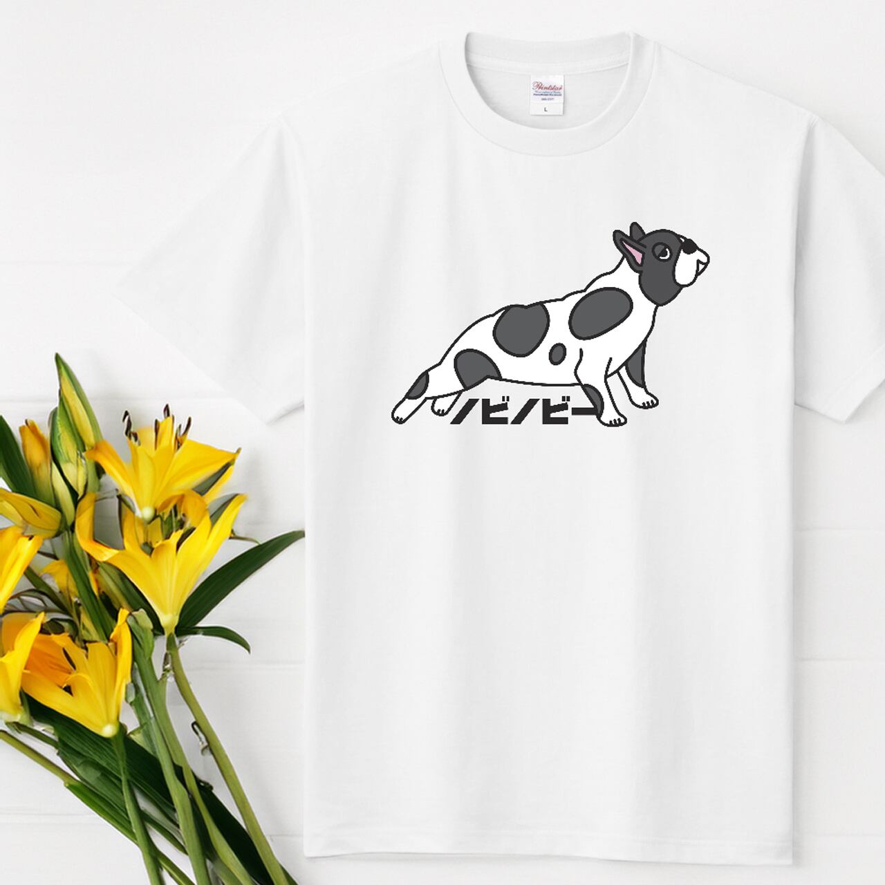 そんな愛らしい様子をイラストにした「ノビver2_パイド」のTシャツ。